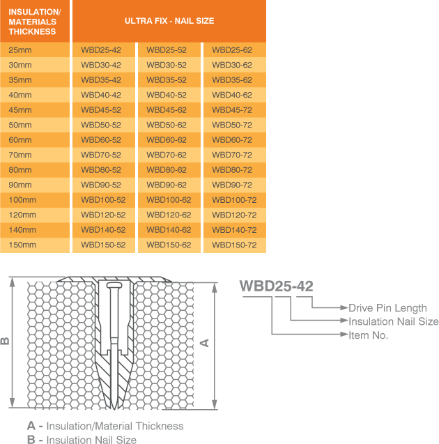 Time is money, in combination with our Rapid Fastener the 2XR ULTRA FIX will enable you to fix your insulation panels much faster than through conventional methods. Quality plastic fixing with premium galvanised nail> SPECIFICATIONS